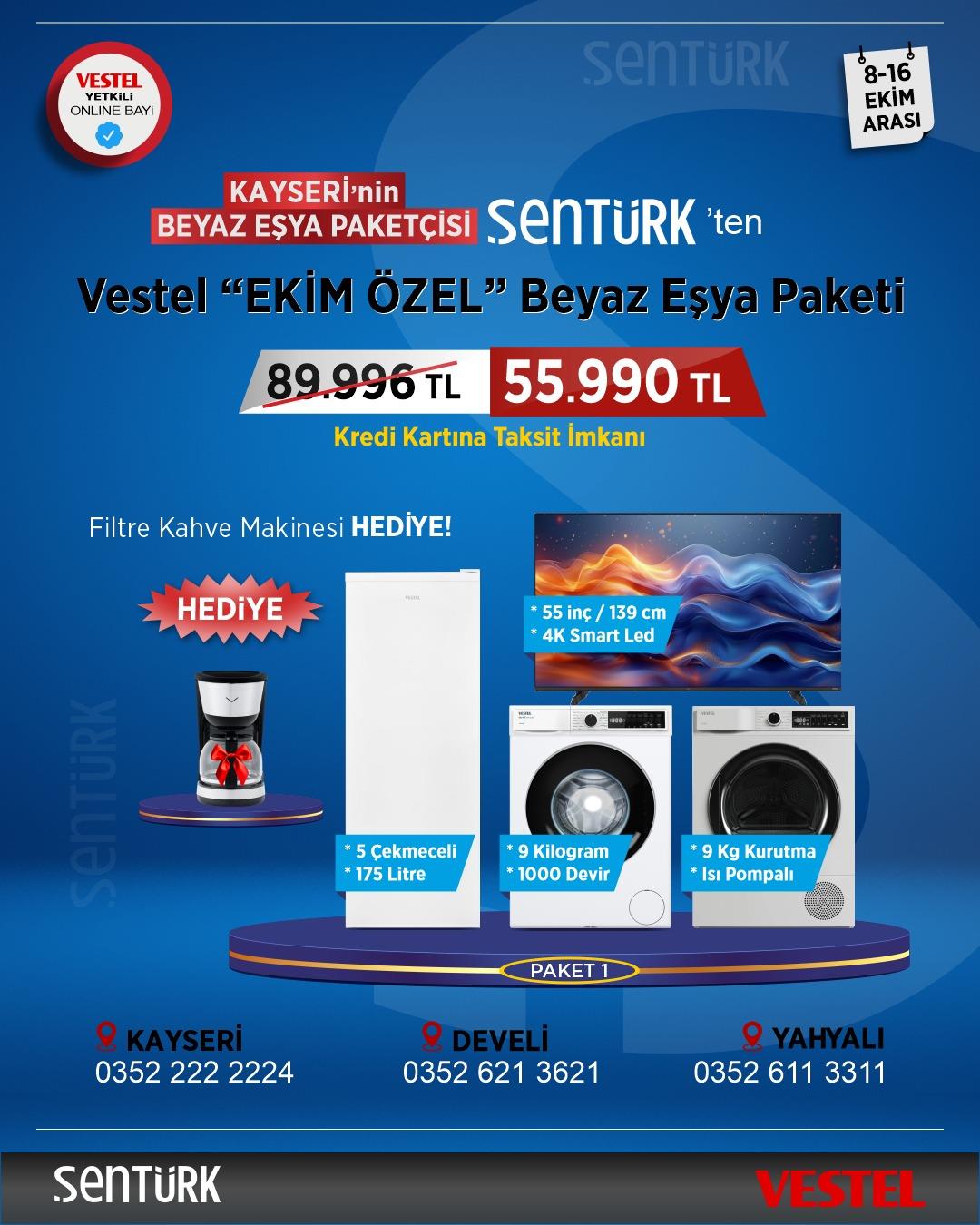 * Hediye: Vestel Keyif 30 Filtre Kahve Makinesi